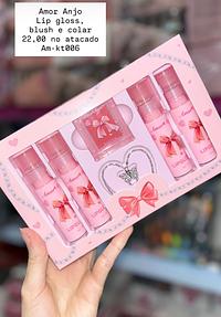Amor Anjo Lip gloss, blush e colar
